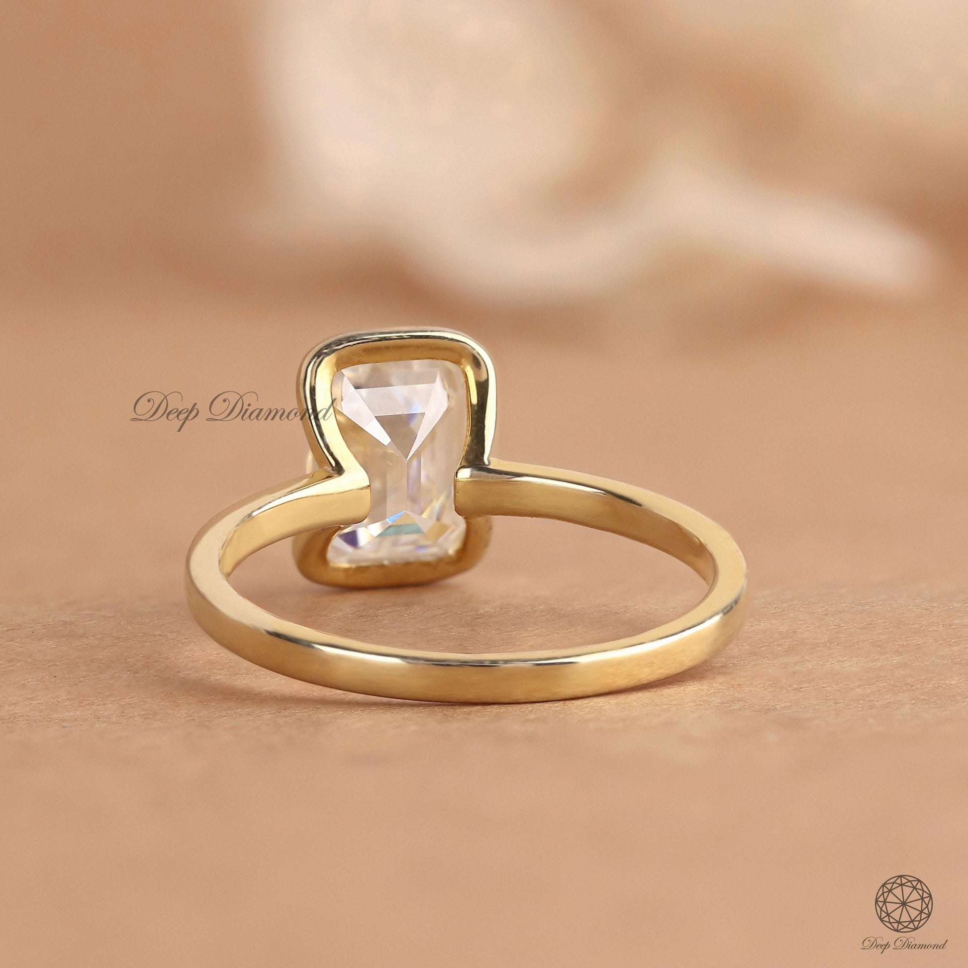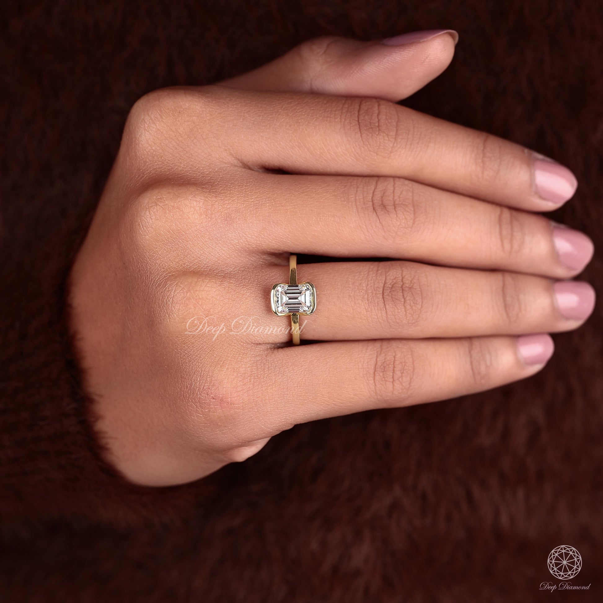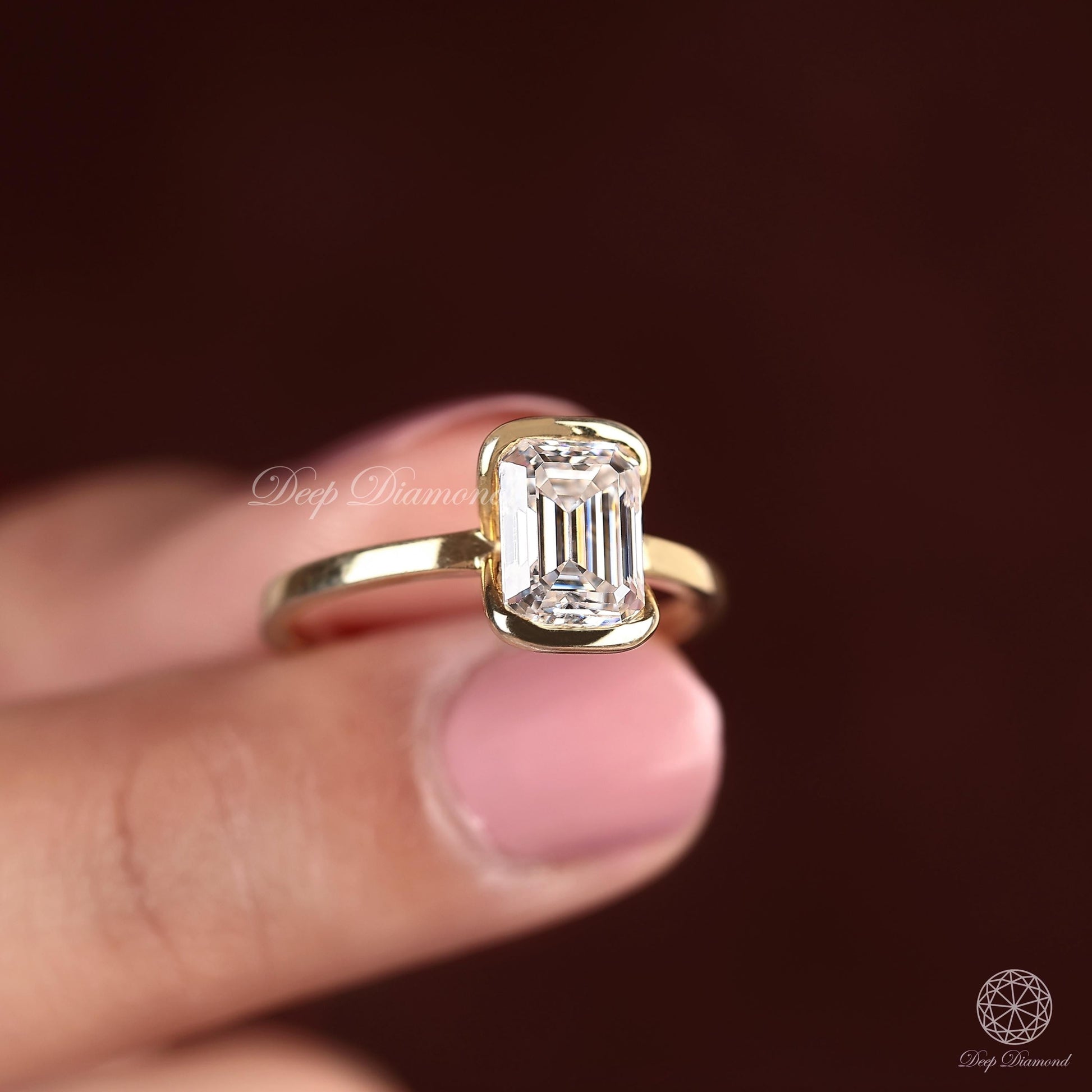 This Emerald Cut Half Bezel Solitaire Ring features EFG color, VS/VVS1 clarity lab-grown diamonds set in 10K to 18K solid gold. A sleek and modern design, perfect for engagements, anniversaries, or everyday wear. Available in white, yellow, and rose gold. Order today! Handmade by DEEPDIAMOND.