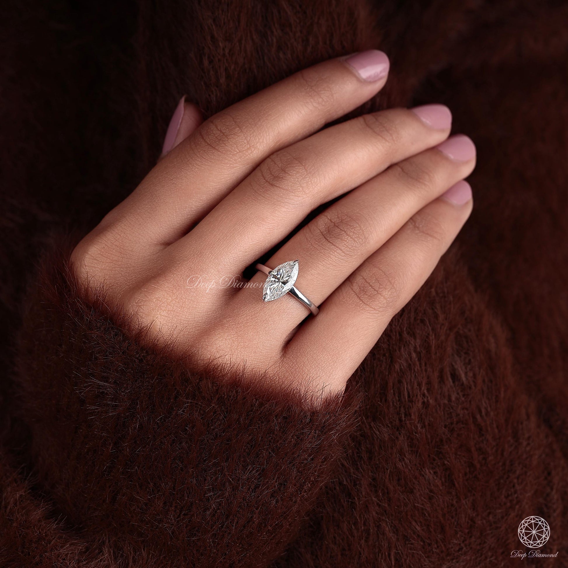 Marquise cut Lab Grown Diamond Ring, 1 - 3 CT Lab Created Diamond Engagement Ring, IGI Certified Marquise Ring, Daily Wear Ring For Women