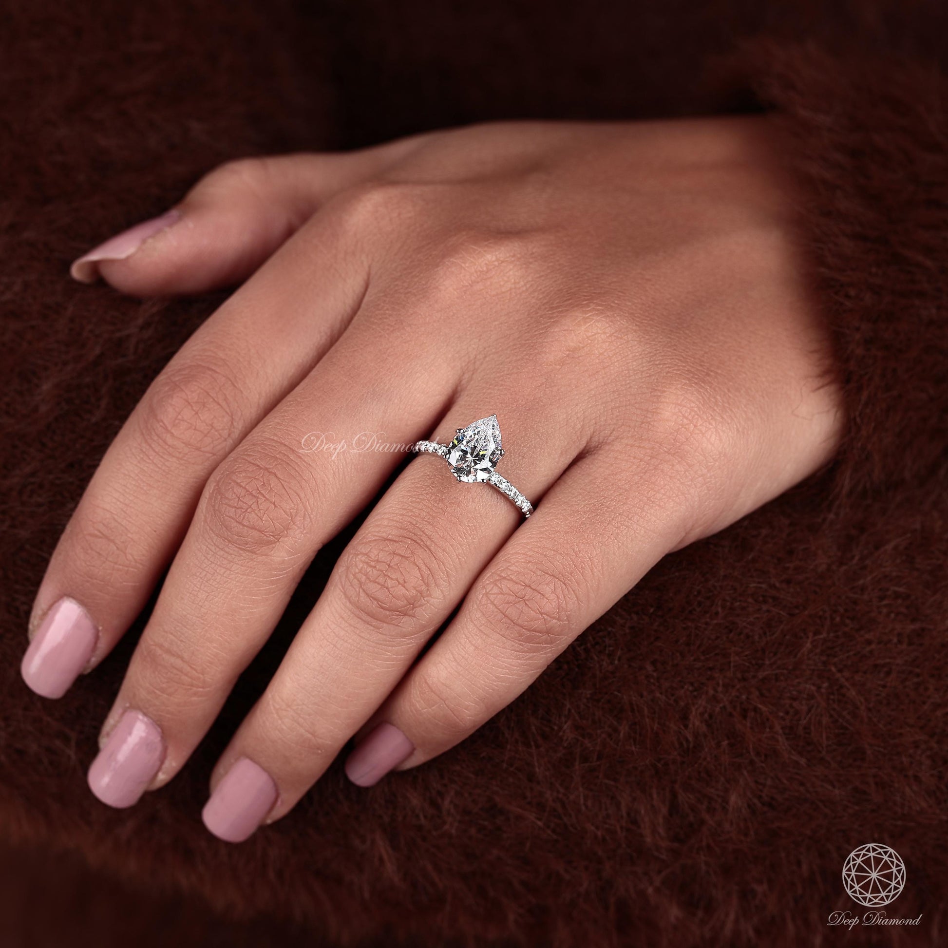 Pear Cut Lab Grown Diamond Ring, Comfort Fit Solitaire Ring, Engagement Ring, IGI Certified F/VS 1โ3 CT CVD Diamond Ring, Anniversary Ring