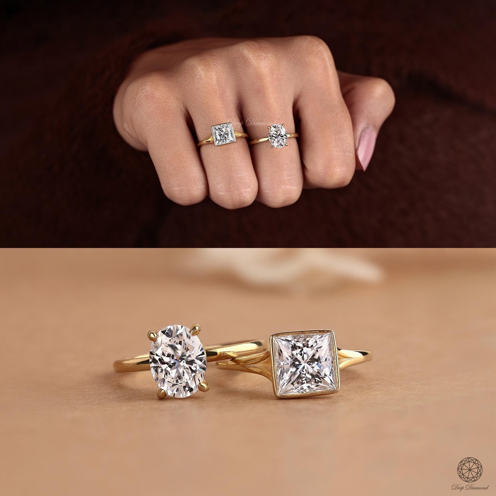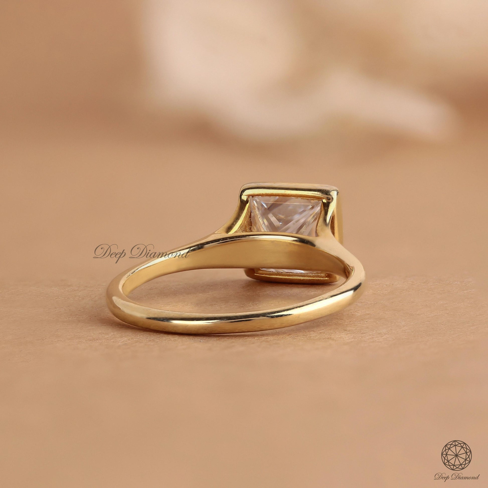 Princess Cut Lab Grown Diamond Ring, Bezel set Engagement Ring For Women, 1 - 3 CT Excellent cut E/VS1 Solitaire Diamond Ring, Proposal Ring