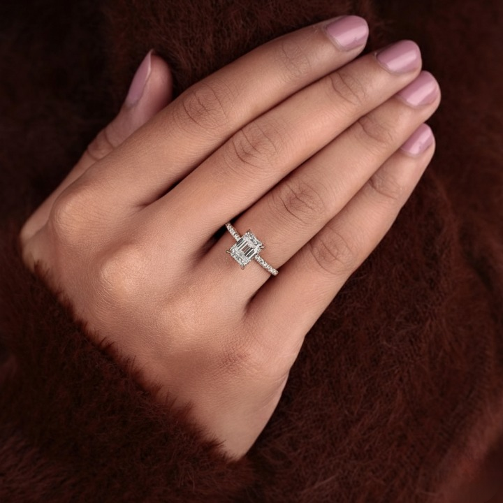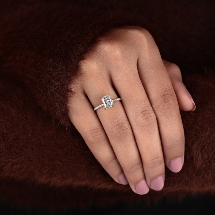 Emerald cut Lab Grown Diamond Ring Hidden Halo Engagement Ring IGI Certified 0.50 - 3 CT Lab Diamond Wedding Ring Pave set Solitaire Ring Valentine Day Gift for her.