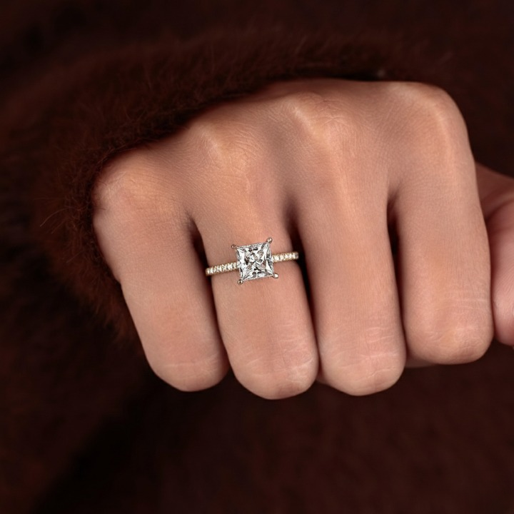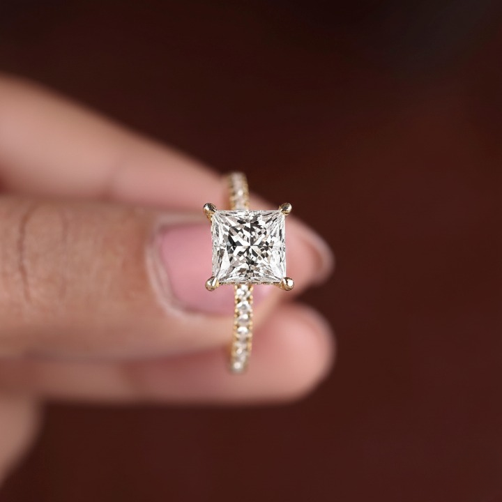 This excellent cut square diamond ring features a princess-cut lab-grown diamond with EF/VS1 clarity, set in a hidden halo pave solitaire design. Crafted in 10K to 18K solid gold, it's a perfect choice for engagements or special occasions. A timeless and ethical piece of fine jewelry. Order today and make it yours!
