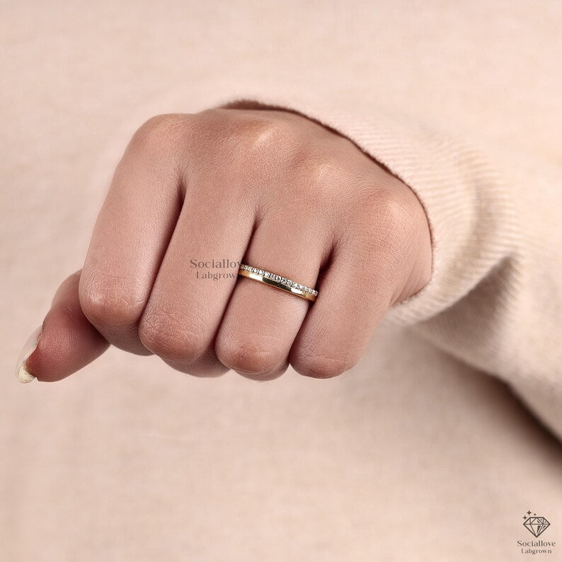 14K Gold Lab Grown Diamond Pave Wedding Band Half Eternity Stackable Ring Minimalist Comfort Fit Bridal Band Gift for Her.