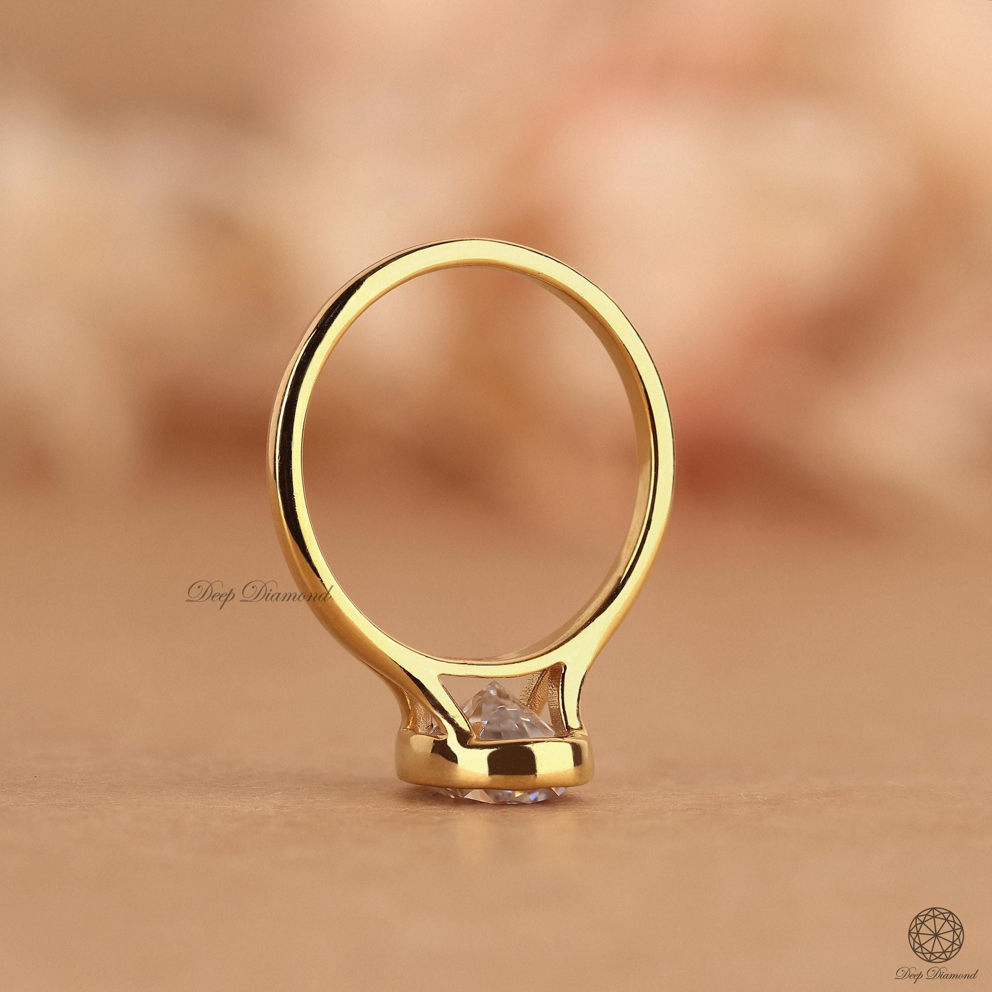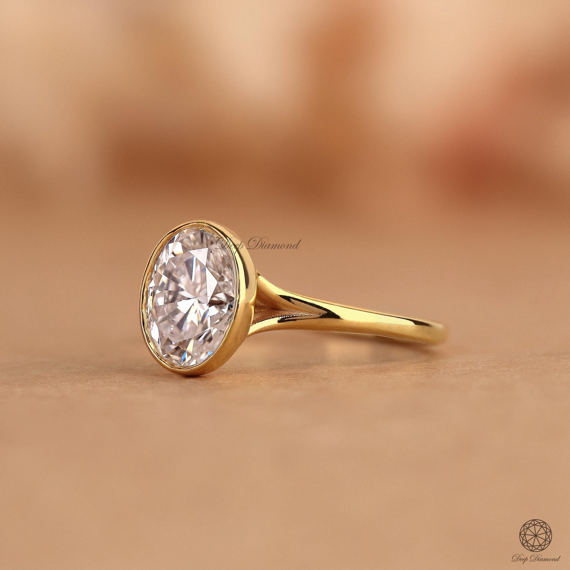 Oval Cut Lab Grown Diamond Solitaire Ring, Bezel Set CVD Diamond Engagement Ring, 2 CT F/VS1 Diamond Split Shank Ring, Proposal Ring for Her