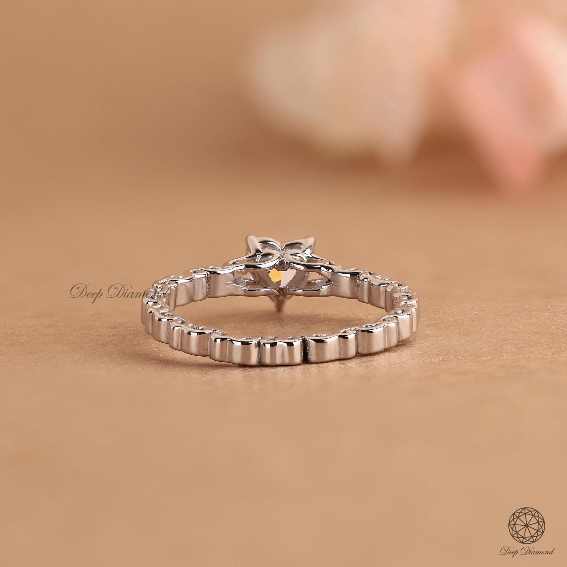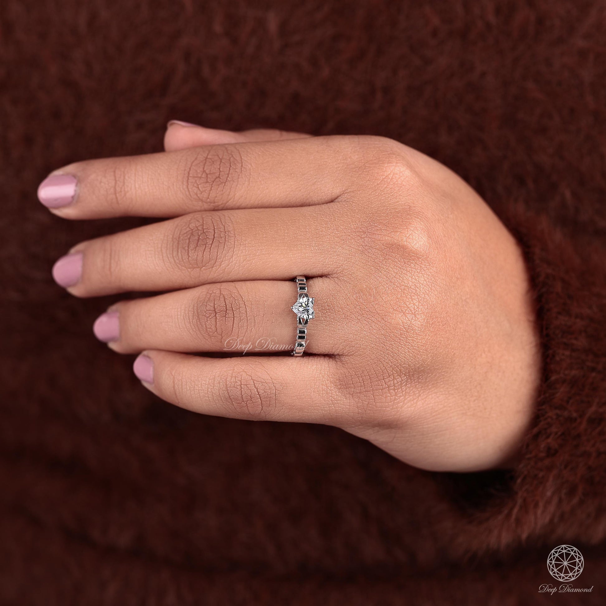 Heart Cut Lab Grown Diamond Ring with Art Deco Shank, IGI Certified 0.5โ3 CT E/VS1 Diamond Engagement Ring, Dainty Solitaire Ring for Her