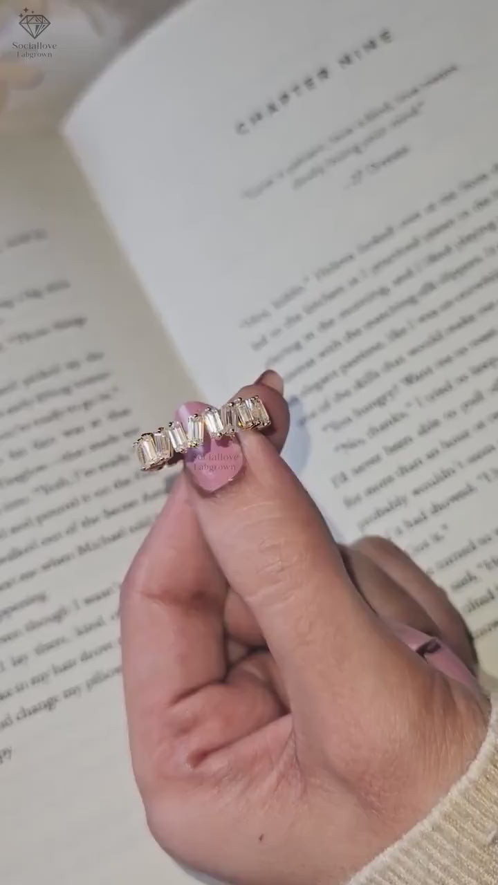 Dainty Baguette Diamond Bar Set Band | 14K Gold Stacking Ring | Handmade Anniversary Gift for Women.