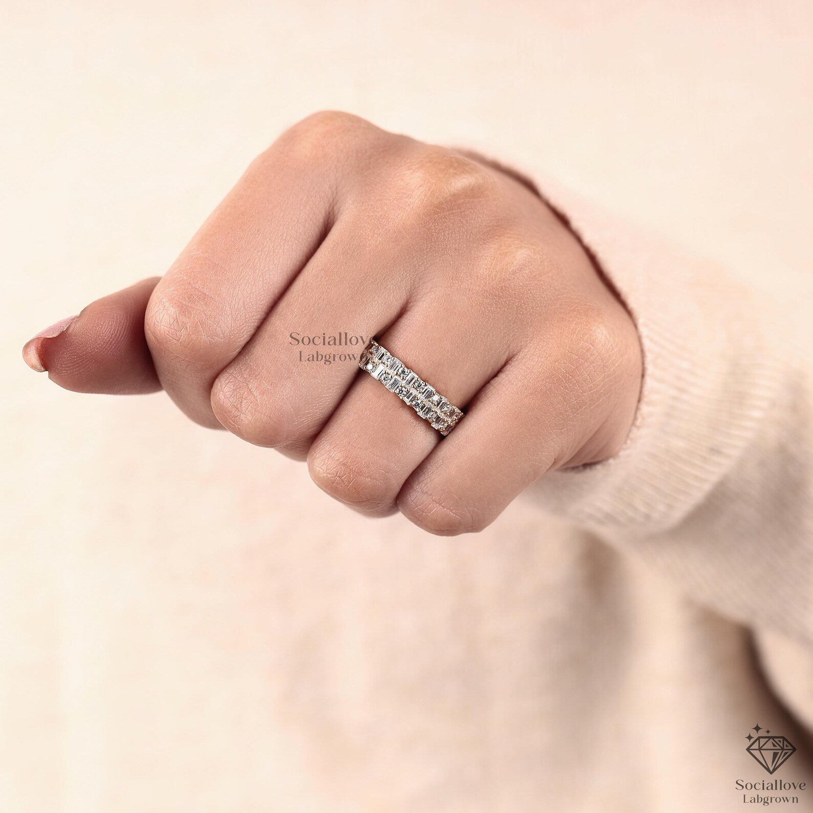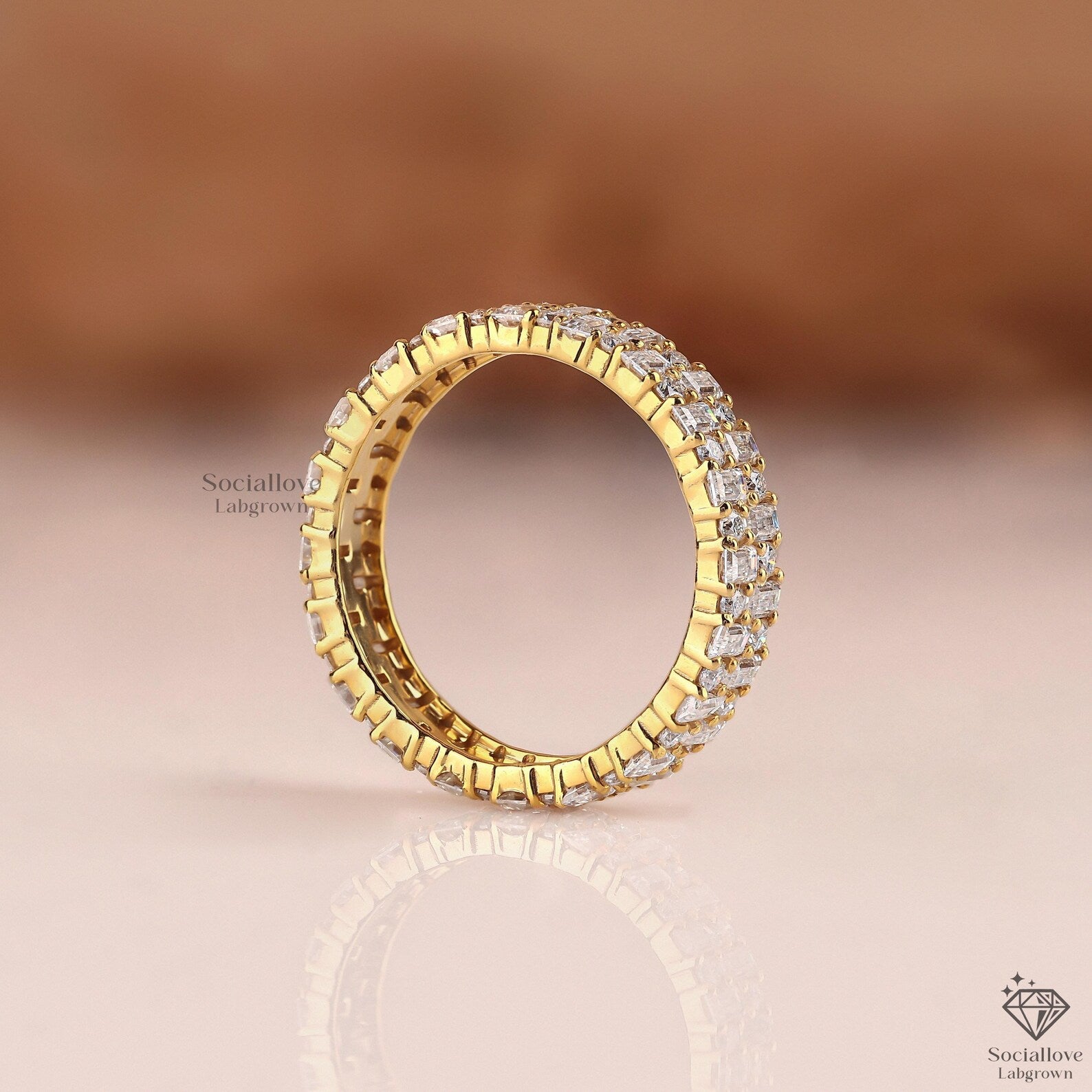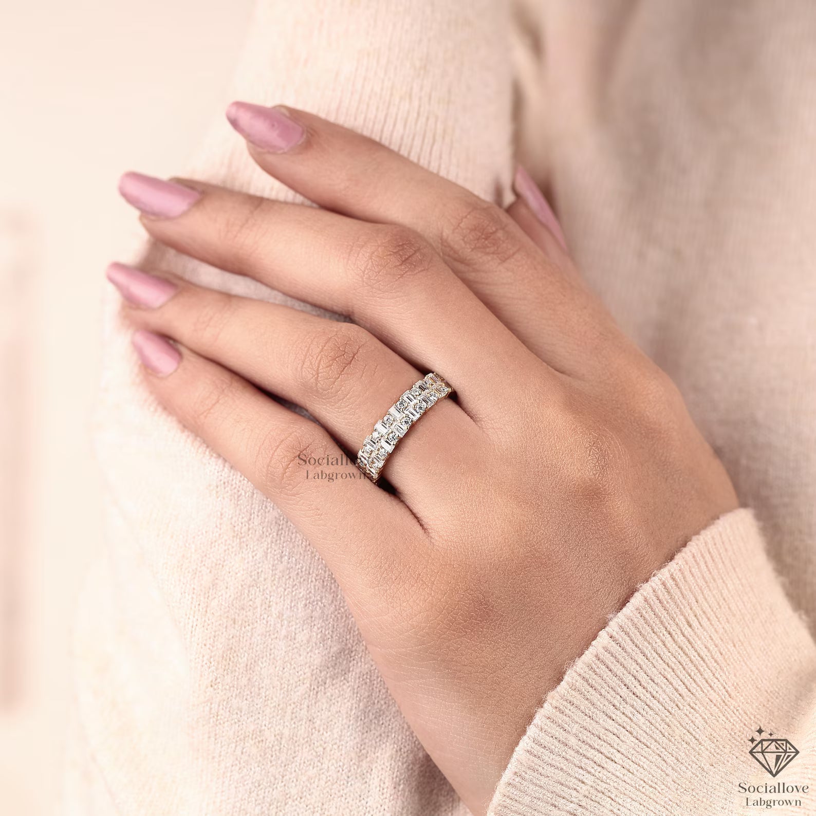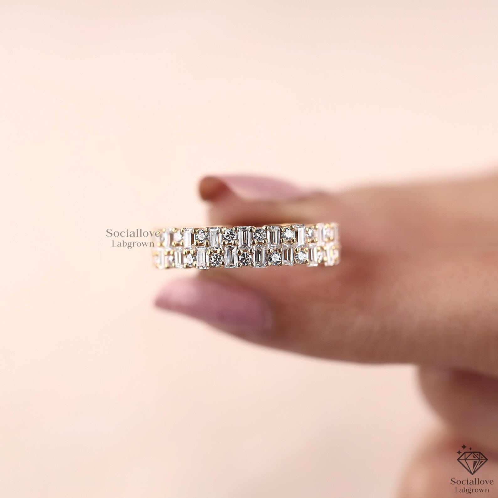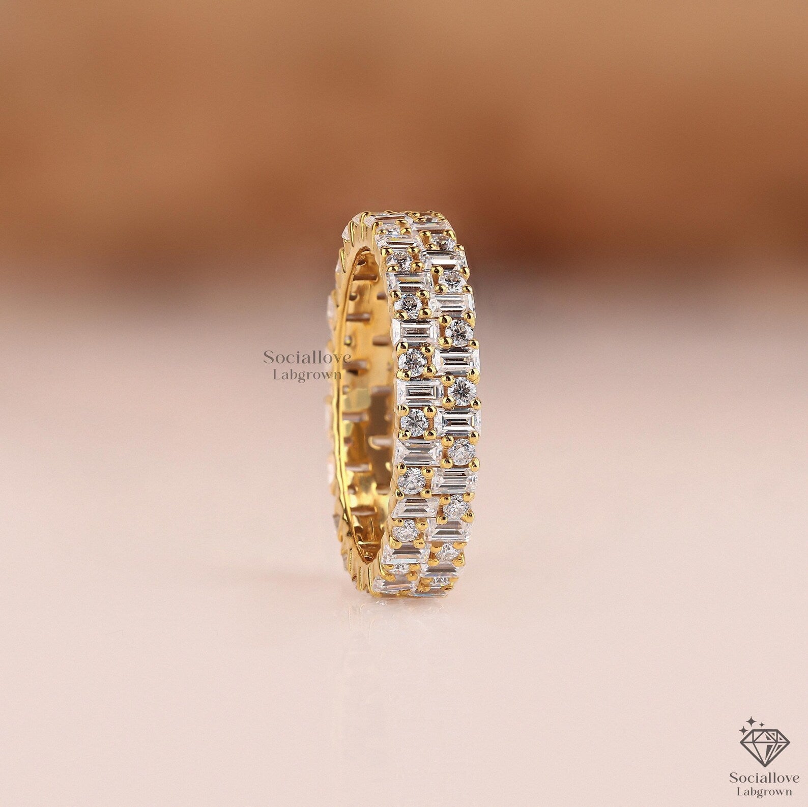 Double Row Baguette and Round Lab Grown Diamond Eternity Band | 14K Gold Bridal Wedding Ring | Full Eternity Stackable Gift for Her.
