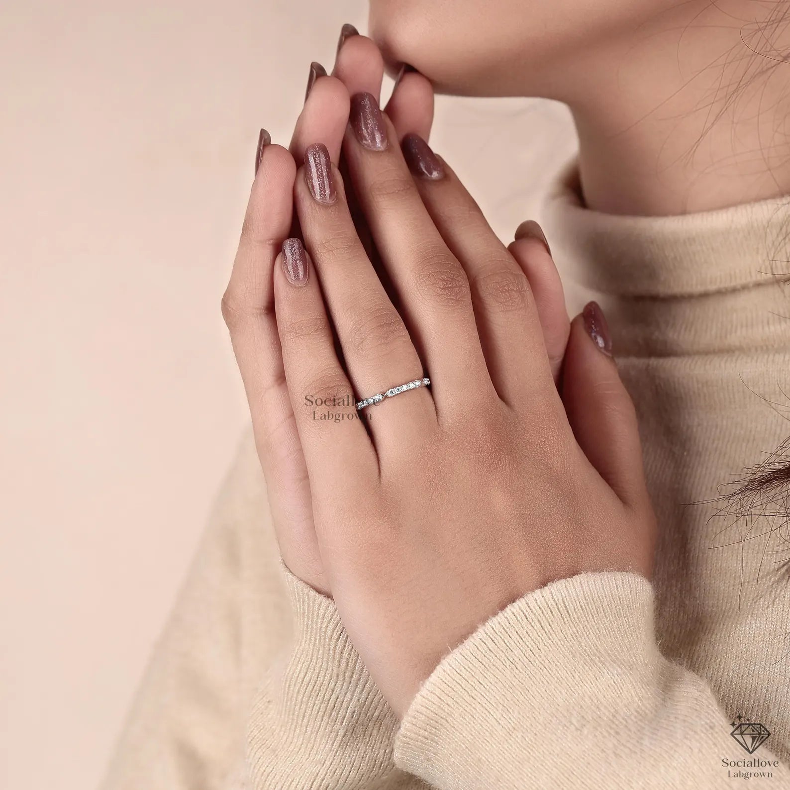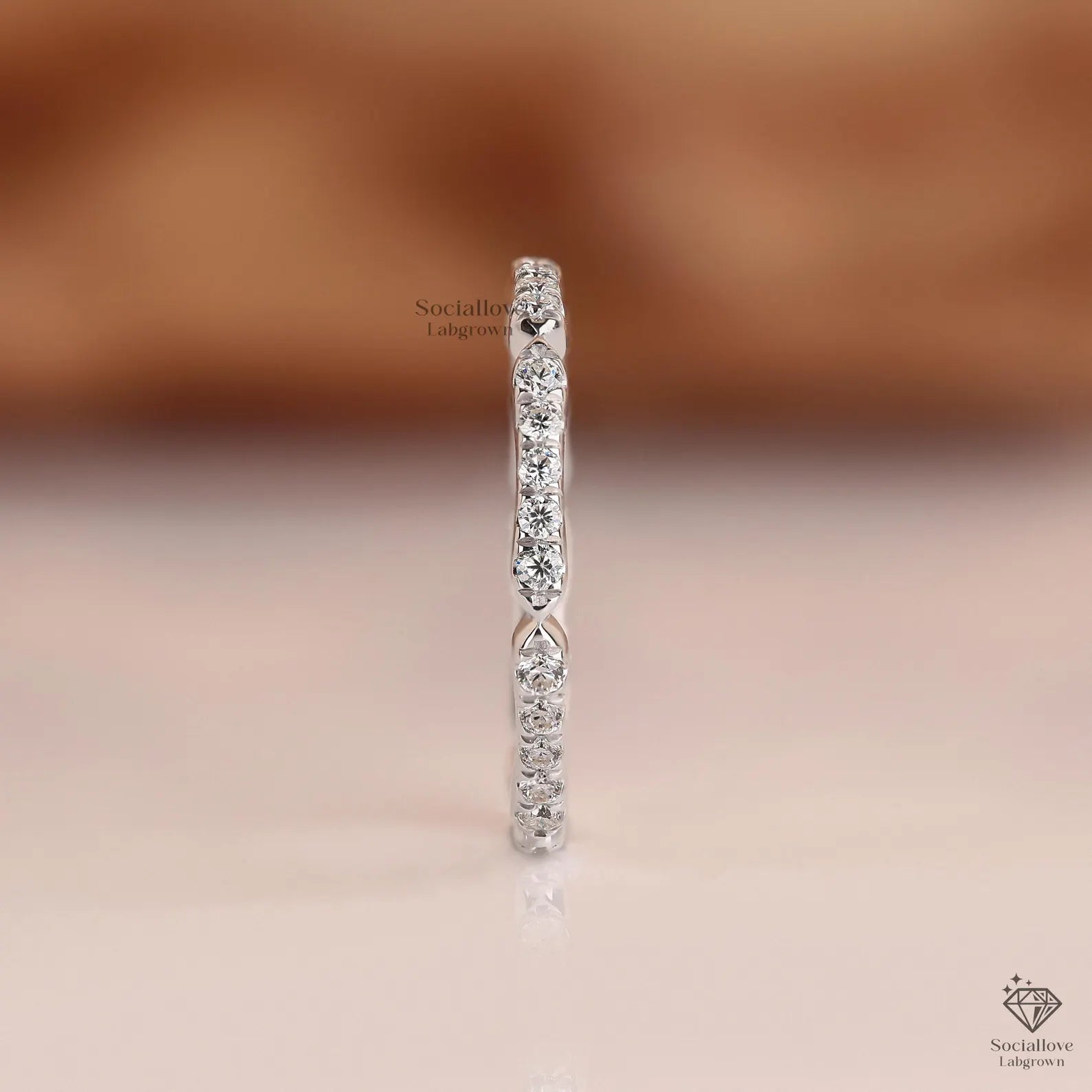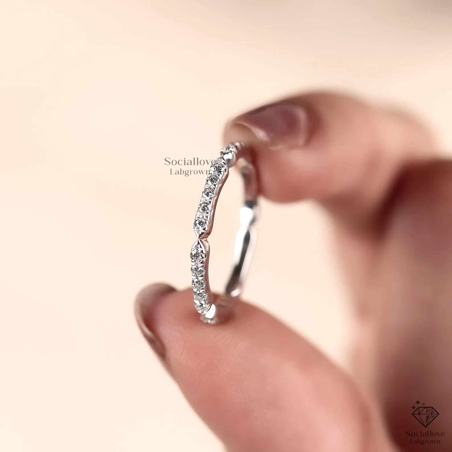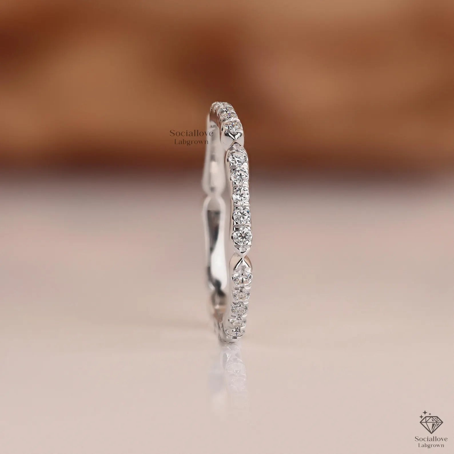 Full Eternity Stacking Bone Ring | Pave Lab Grown Diamond Stacking Band in 14K Gold Anniversary Gift for Women.