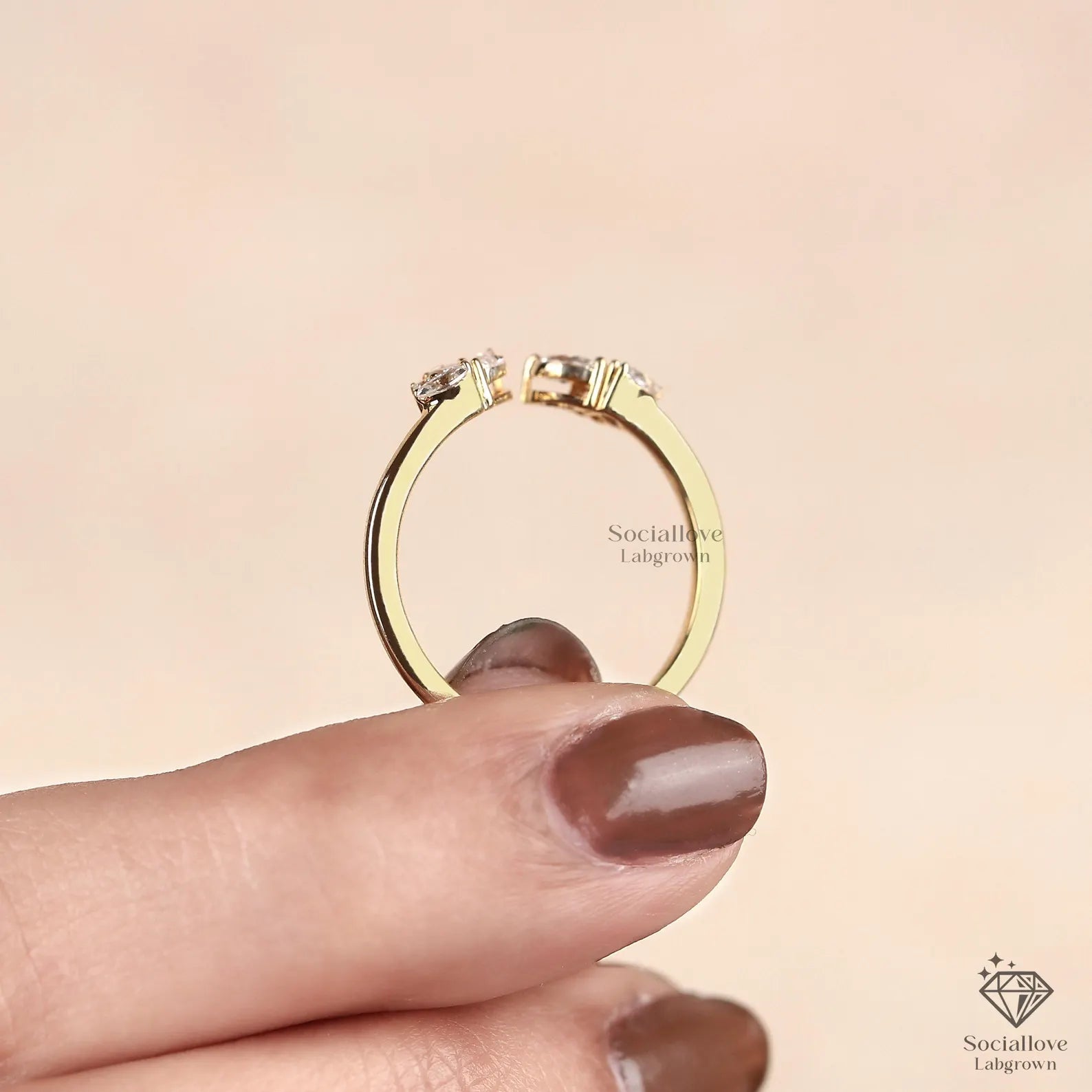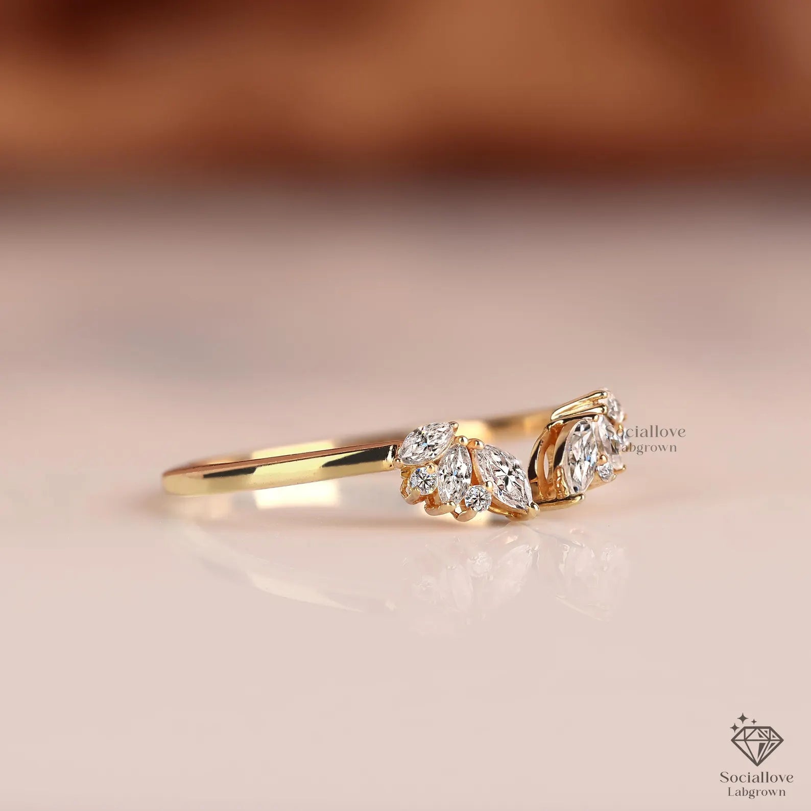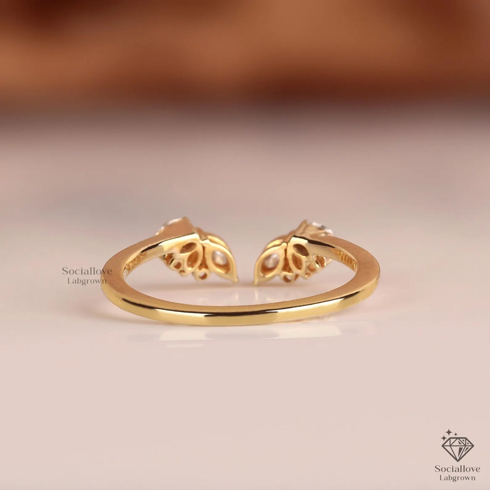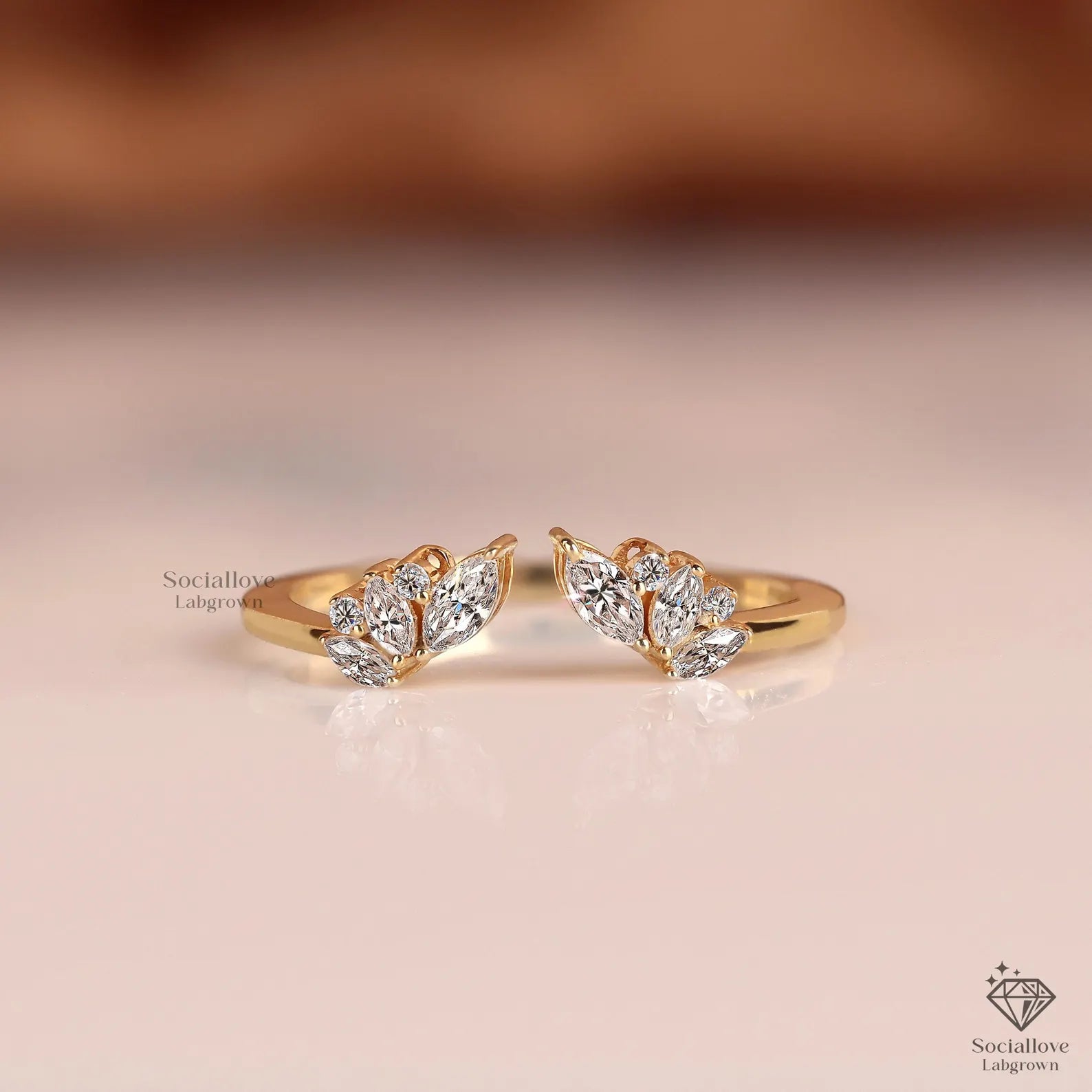 Marquise & Round Diamond Open Band | Stacking Leaf Ring | Lab Grown Diamond Wedding Ring Anniversary Gift for her.