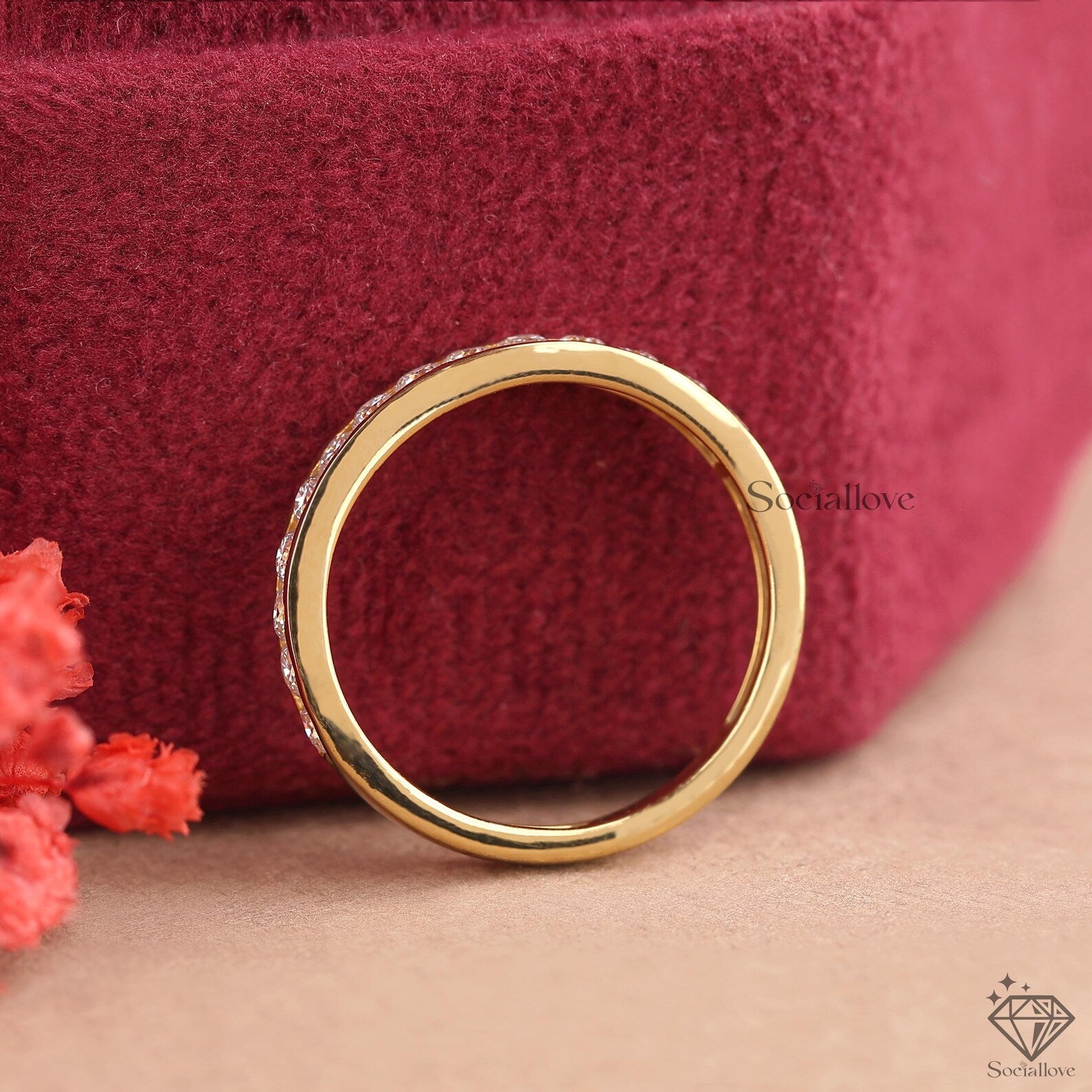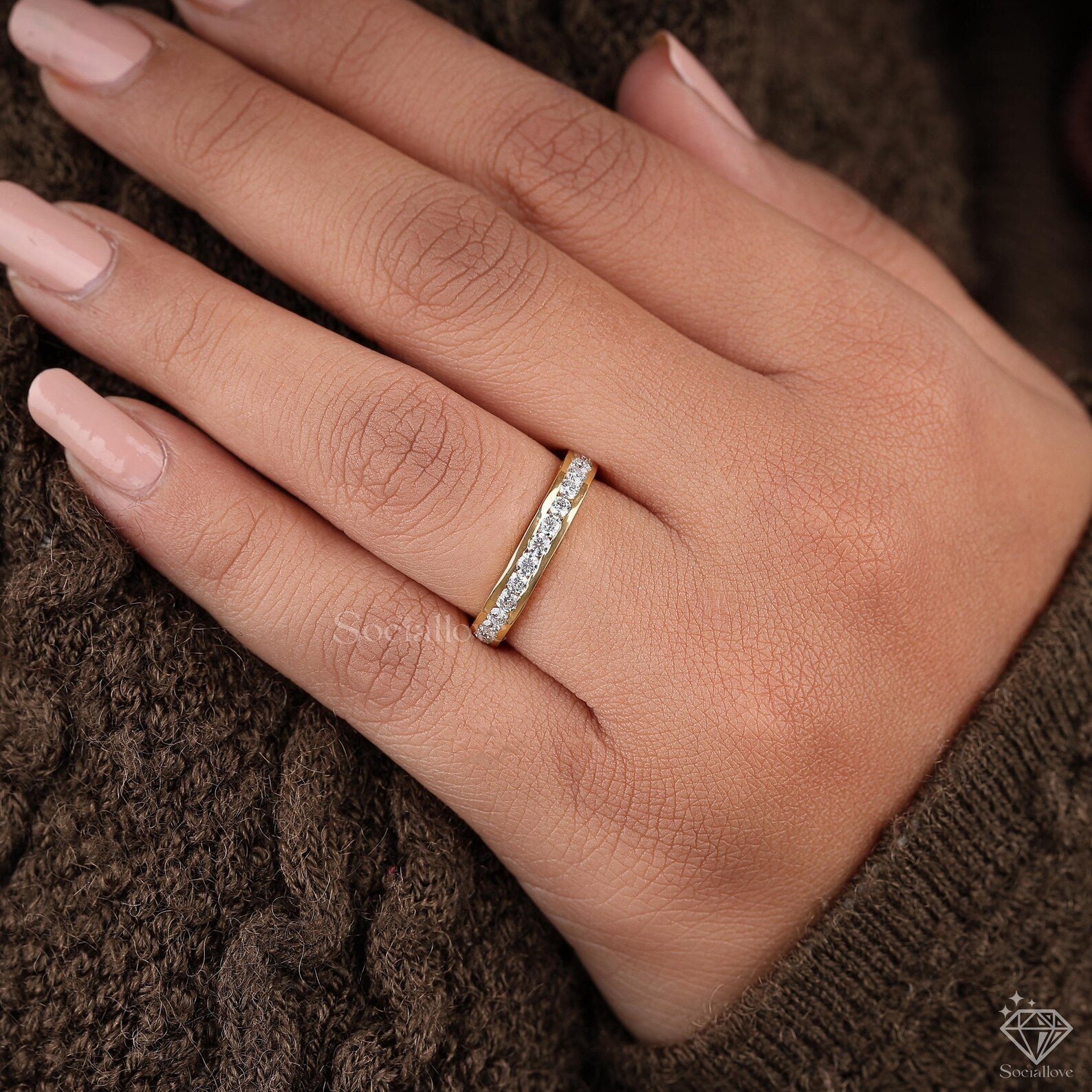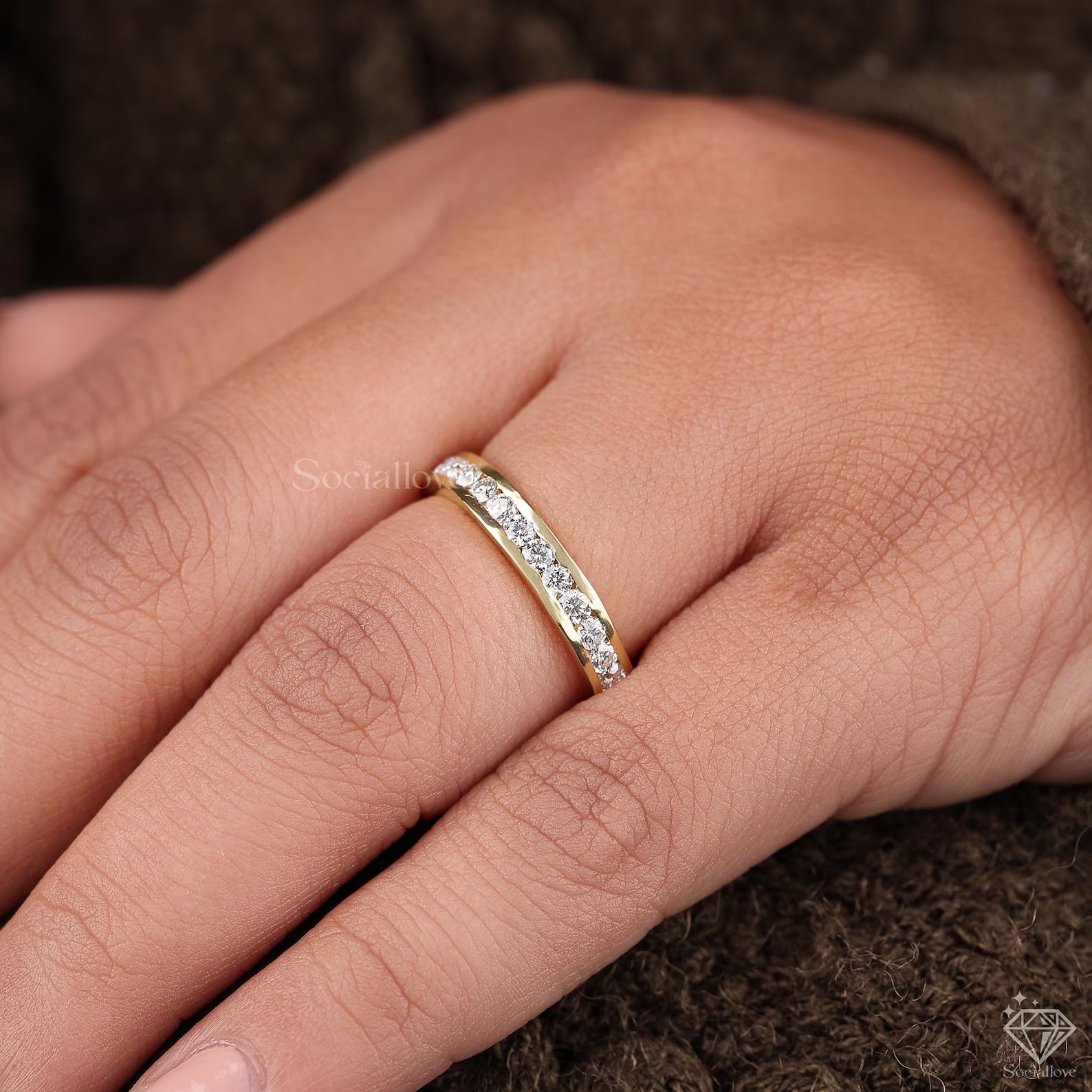 Round Lab Grown Diamond Half Eternity Ring | 14K Yellow Gold Channel Set Wedding Band Anniversary Gift for Women.