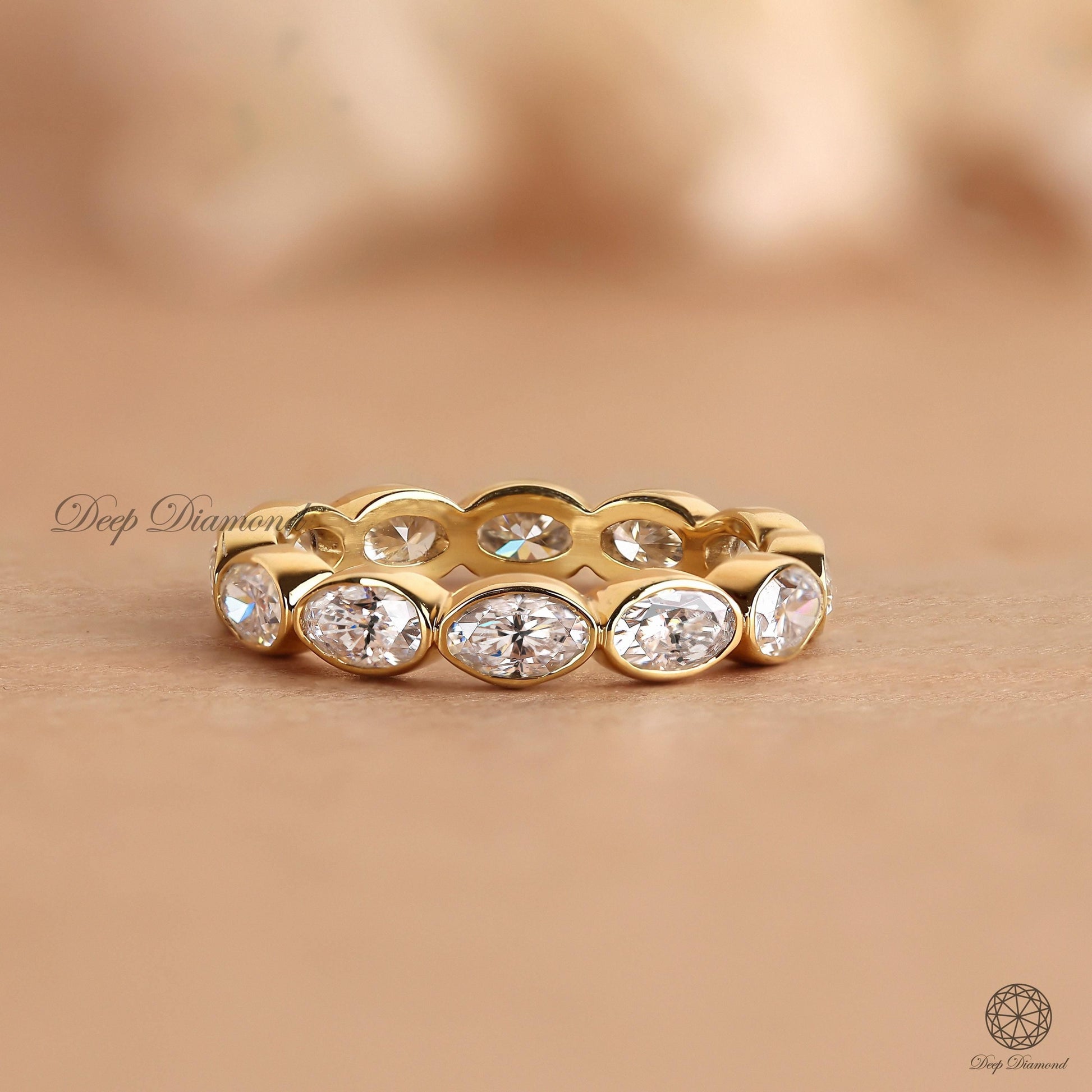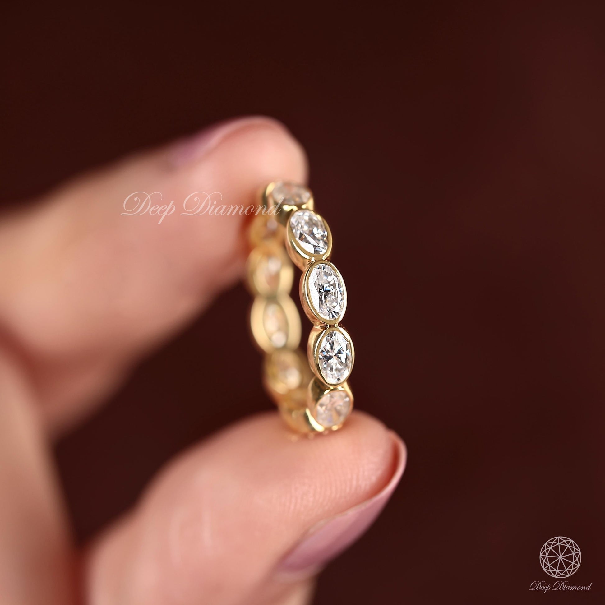 Crafted with EFG color, VS/VVS1 clarity lab diamonds, this oval cut bezel set eternity band is designed for comfort and brilliance. Set east to west in 10K to 18K solid gold, it's perfect for stacking, matching, or wearing solo. A timeless symbol of love and commitment. Order today and make it yours! Handmade by DEEPDIAMOND.