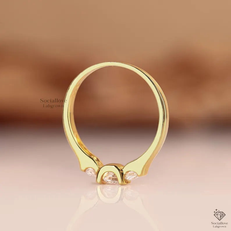 Lab Grown Diamond Trio Ring - 14K Yellow Gold Three Stone Engagement Ring - Bezel Set Round Cut Diamond Ring for Women.
