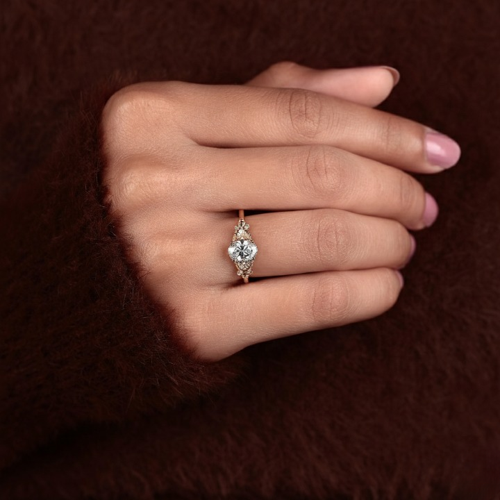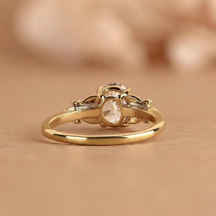 This nature-inspired ring features an oval cut lab-grown diamond with leaf-style detailing, crafted in 10k to 18k solid gold. We use the best handmade EFG color diamonds with VS or VVS1 clarity, perfect for meaningful moments and everyday beauty. Order today. Man Made by SUNDARAM JEWELLERS.