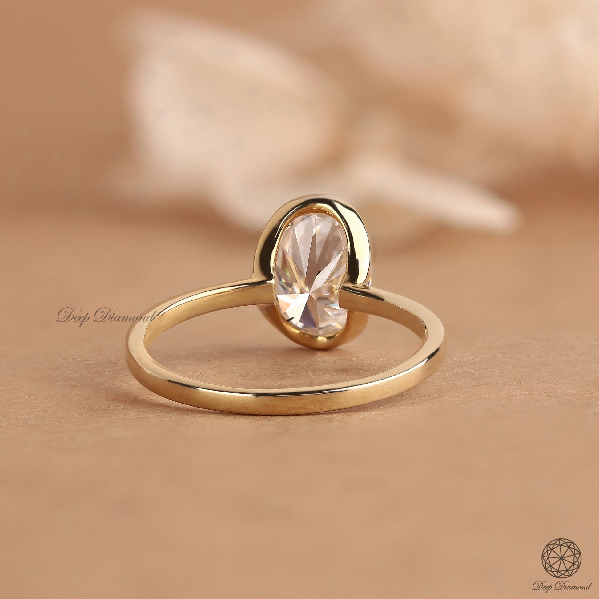 Oval Diamond Ring, Half Bezel Set Lab Grown Diamond Engagement Ring, Excellent Cut IGI Certified 1โ3 CT Solitaire Ring, Anniversary Ring