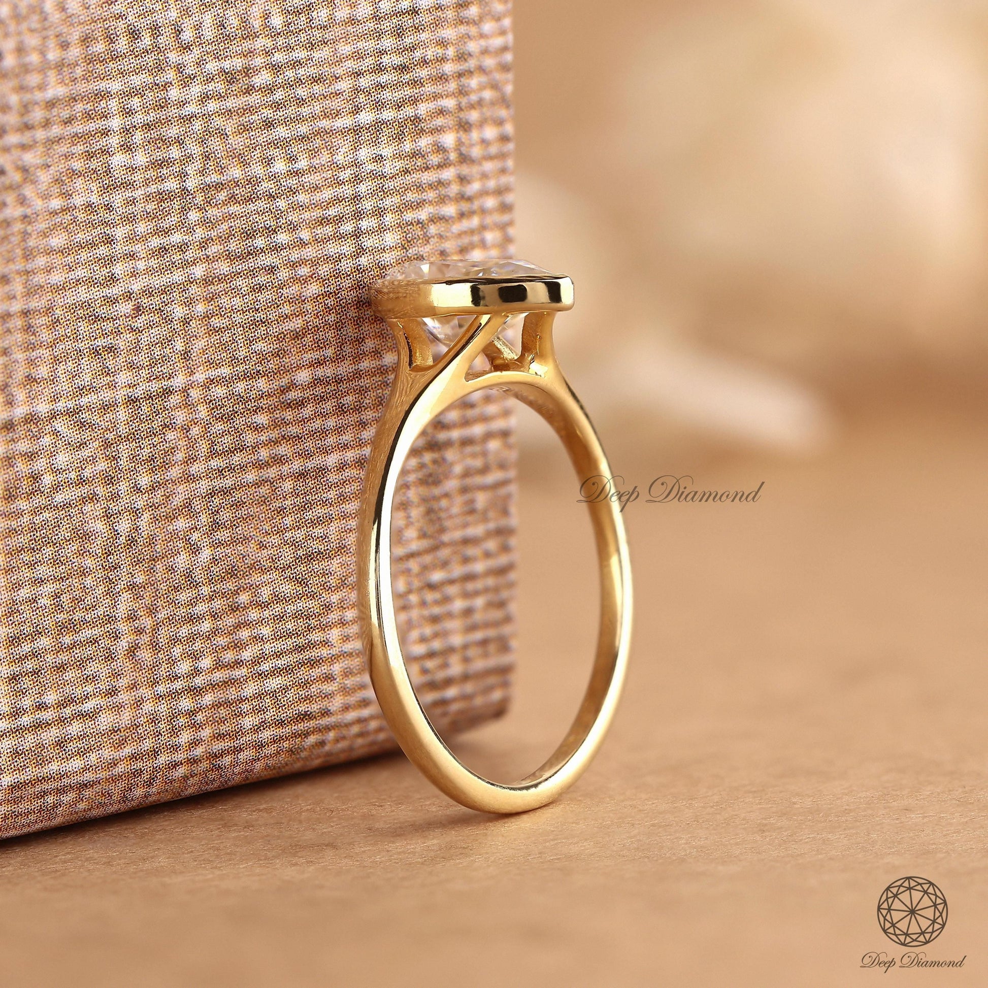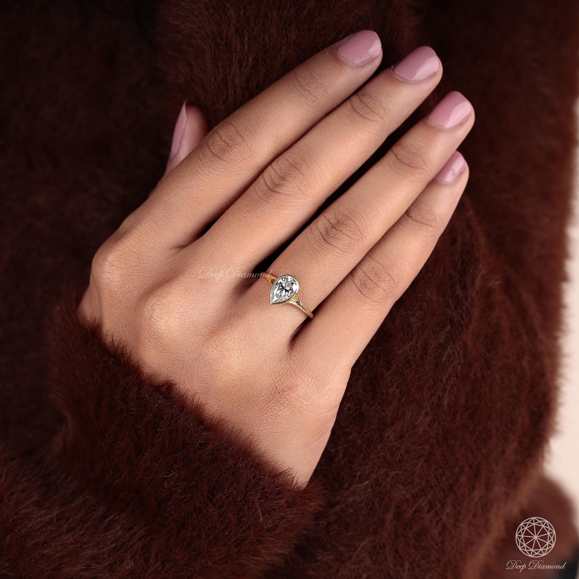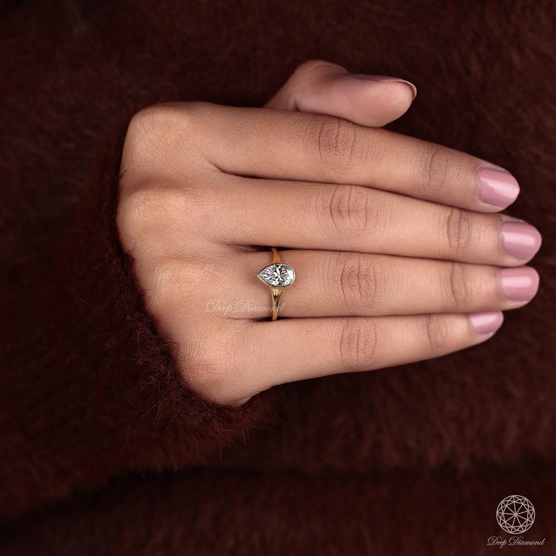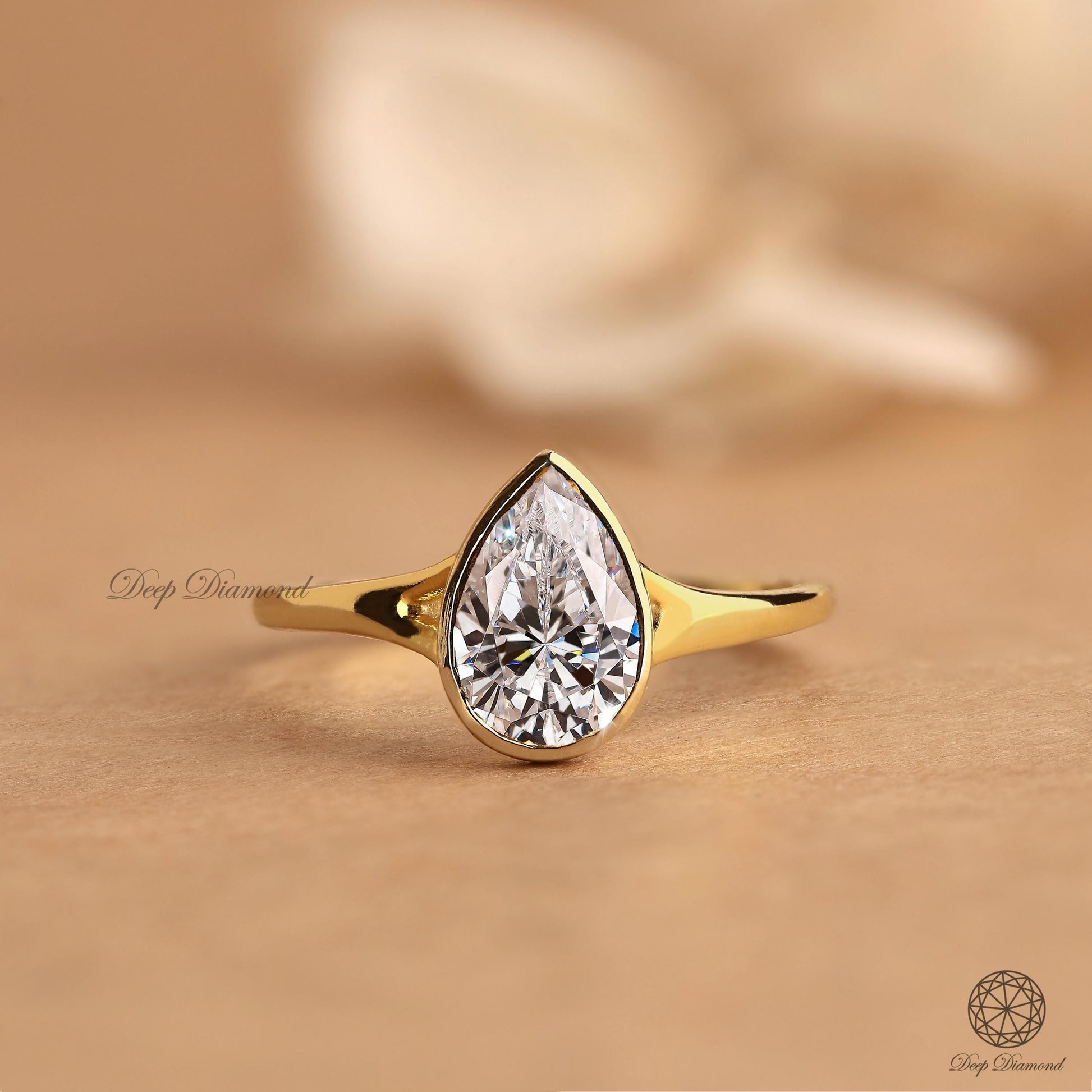 Pear Cut Diamond Ring, IGI Certified 1.80 Carat Lab Grown Diamond Ring, Bezel Set Solitaire Engagement Ring, Dainty Split Shank Ring for Her