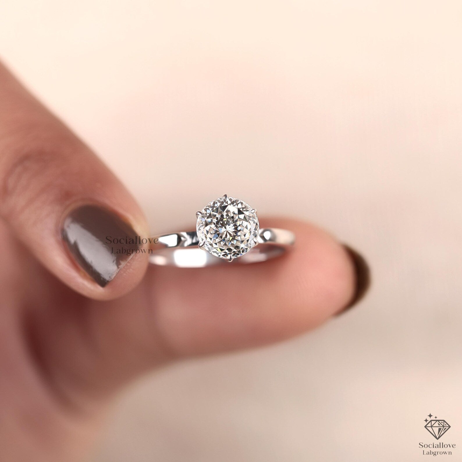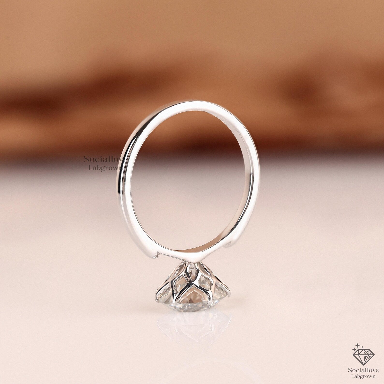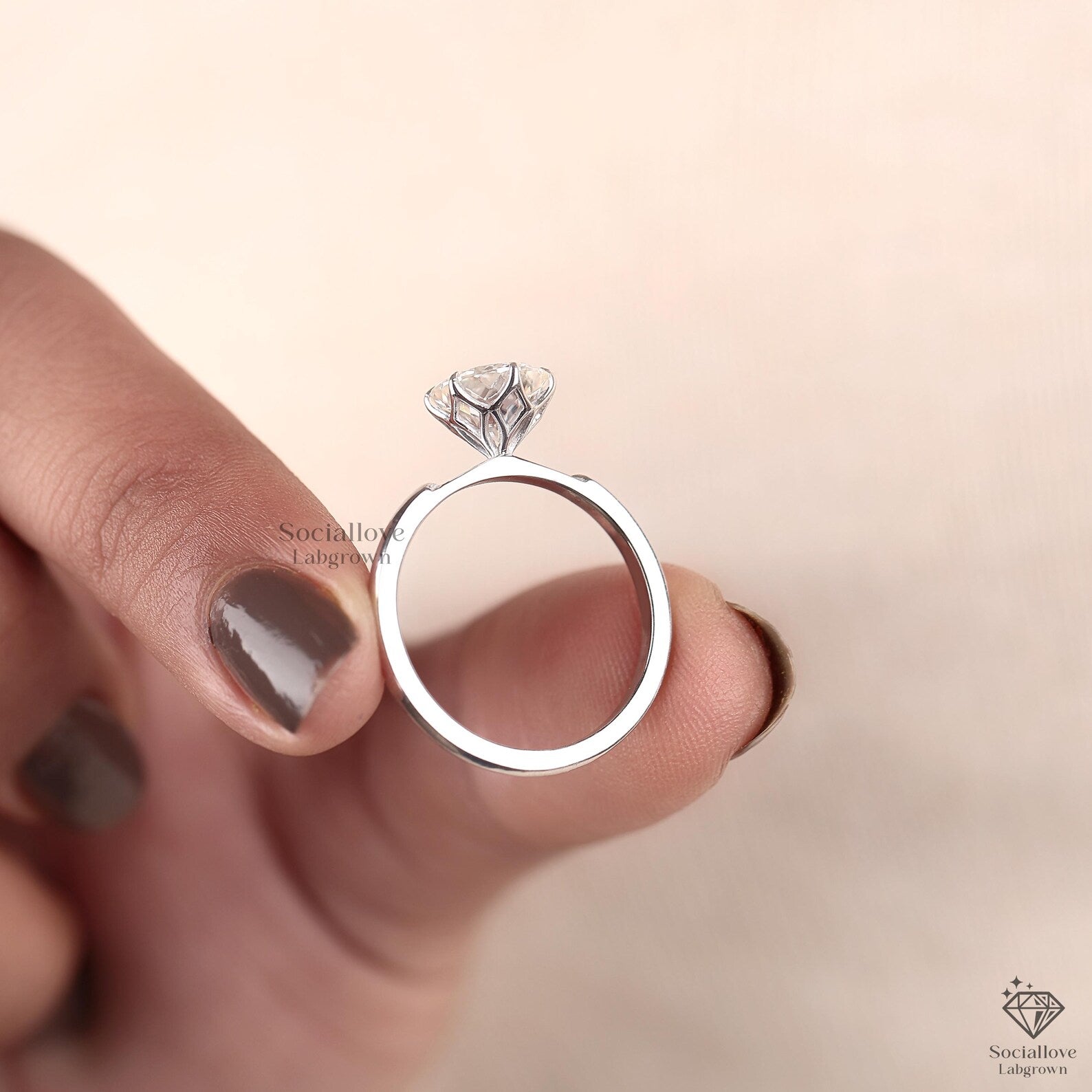 Cushion Cut Diamond Engagement Ring, IGI Certified 1–3 Carat Lab Created Diamond Ring, Low Profile Solitaire Ring, Comfort Fit Bridal Ring