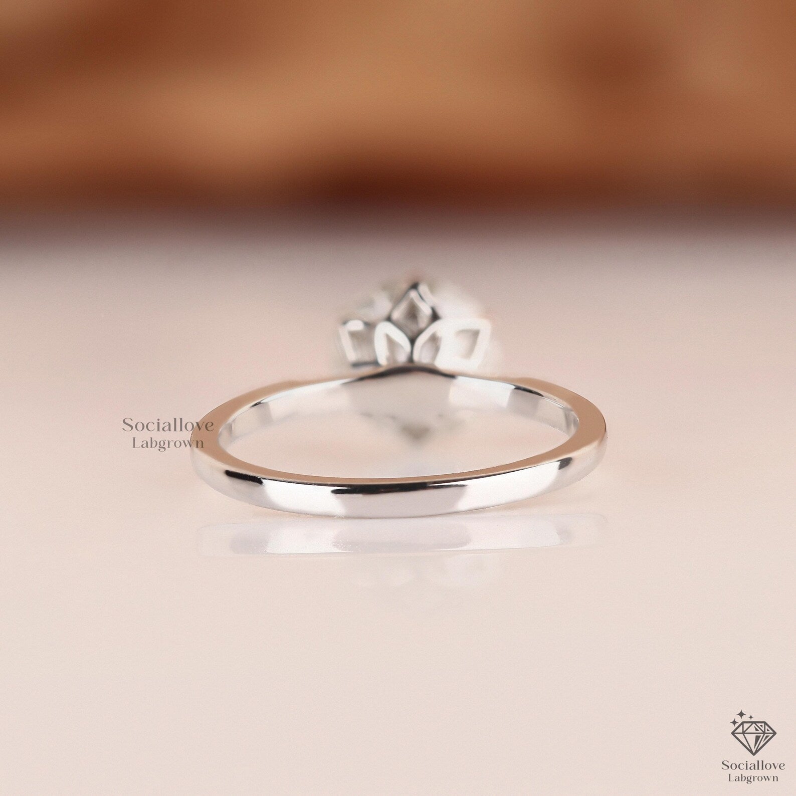 Portuguese Cut Lab Grown Diamond Engagement Ring | 1-3 CT E/VS1 Solitaire | IGI Certified Tulip Setting in 14K Gold Ring Gift for women.
