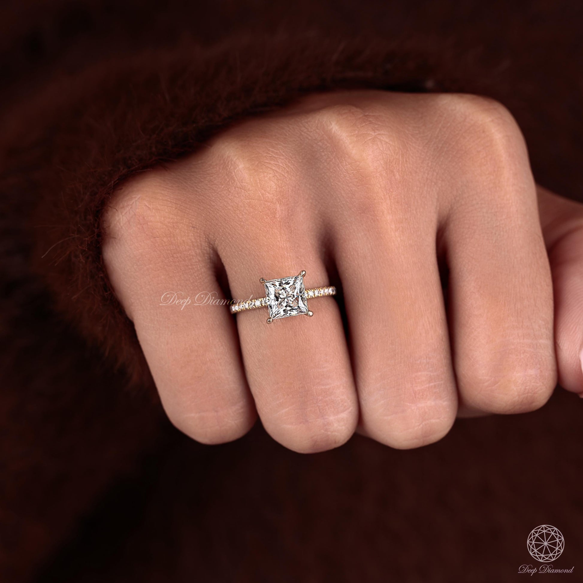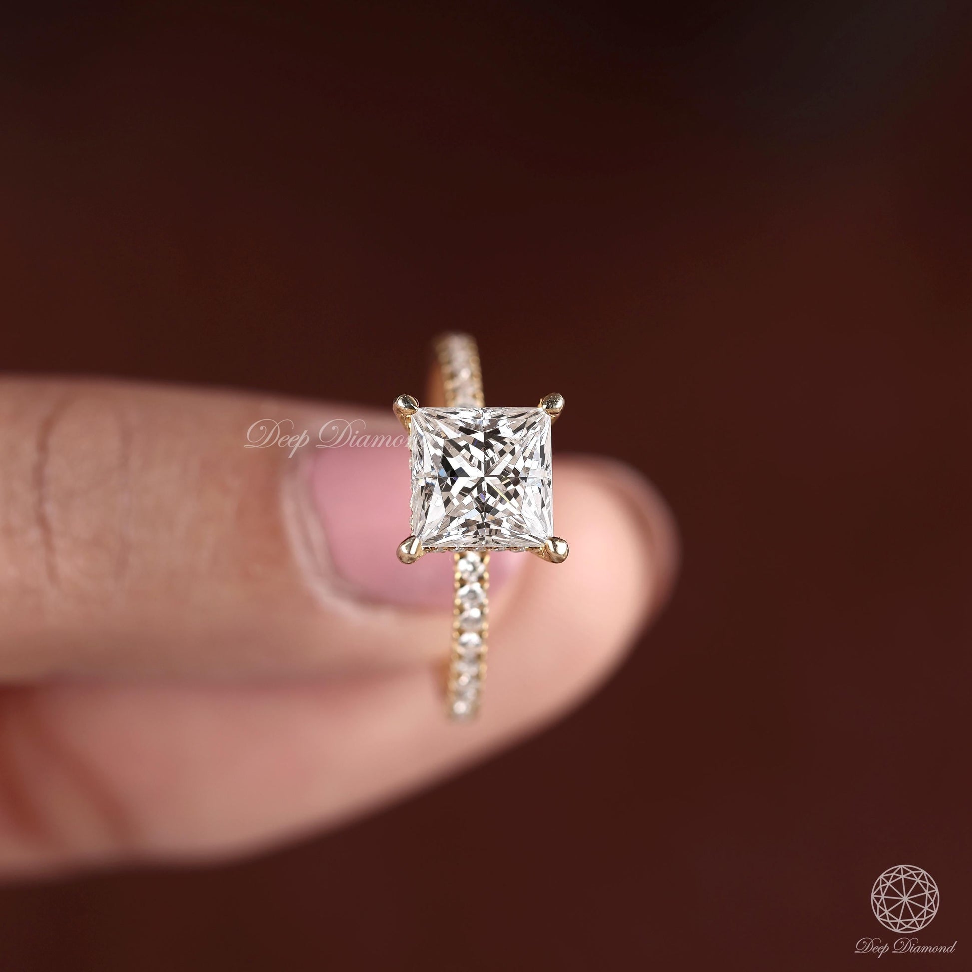This excellent cut square diamond ring features a princess-cut lab-grown diamond with EF/VS1 clarity, set in a hidden halo pave solitaire design. Crafted in 10K to 18K solid gold, it's a perfect choice for engagements or special occasions. A timeless and ethical piece of fine jewelry. Order today and make it yours!