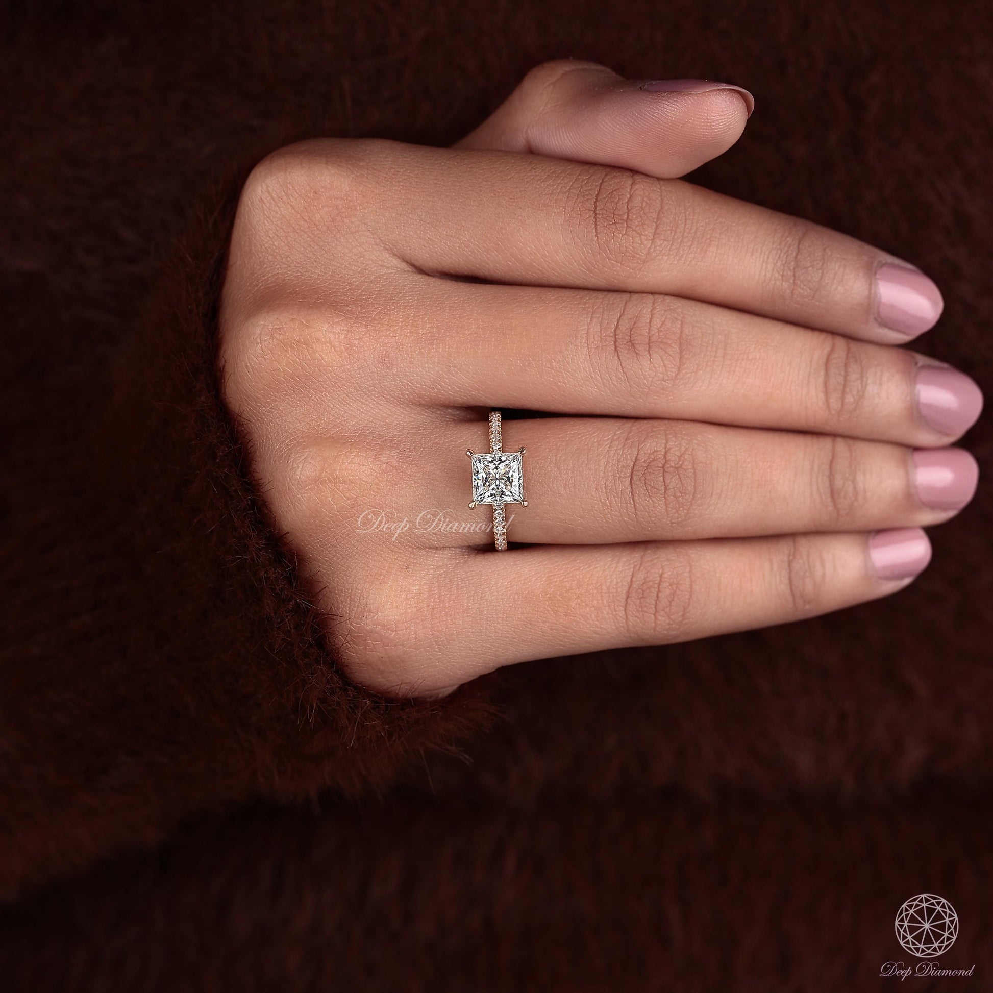 Princess cut Lab Grown Diamond Hidden Halo Ring, Pave set Solitaire Ring, 1 - 3 Carat EF/VS1 Clarity Diamond Ring, Engagement Ring For Women