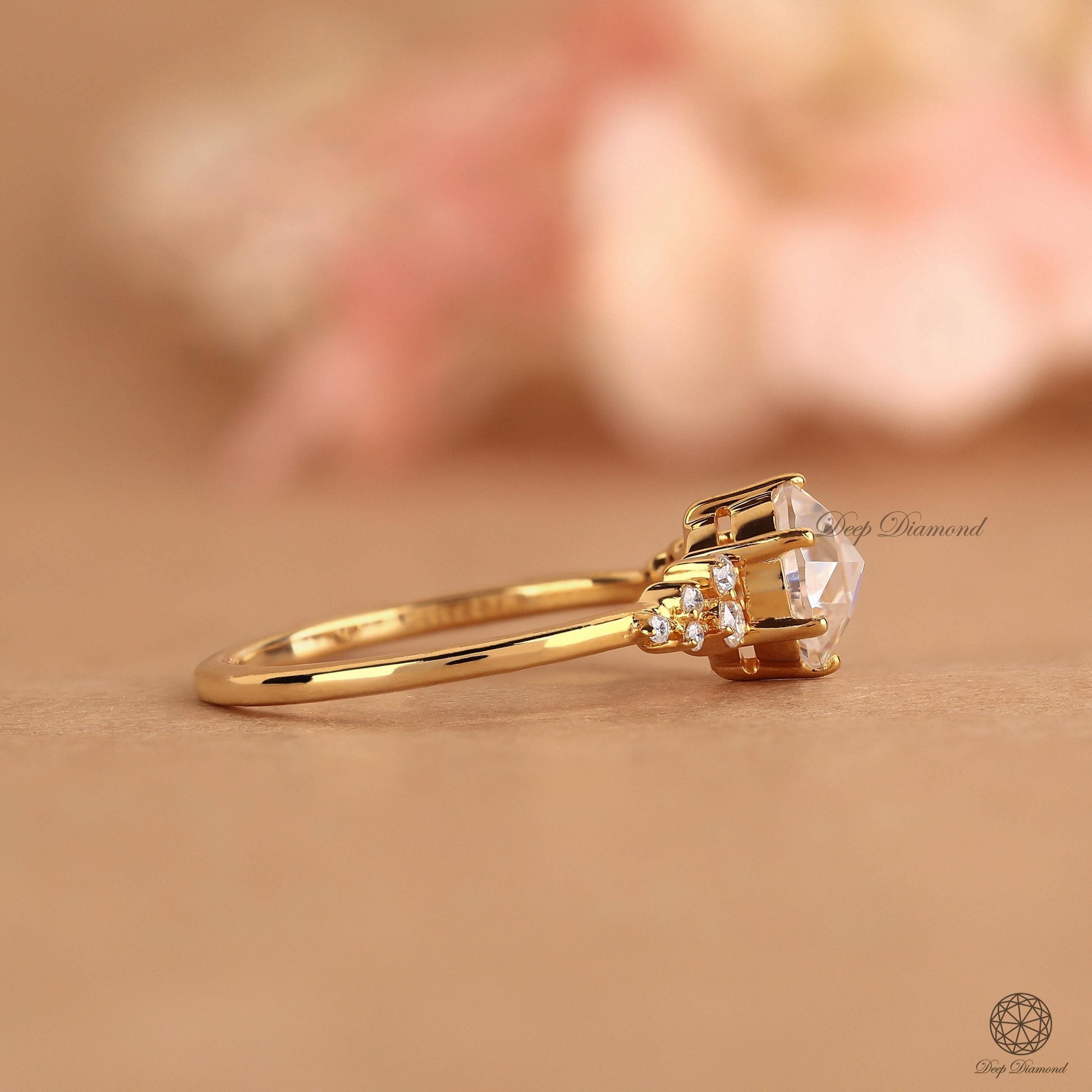 Round Rose Cut Diamond Engagement Ring, Snowdrift Ring, 1–2 CT Lab Created Diamond Ring, Fancy Cut Wedding Ring, Anniversary Ring for Wife